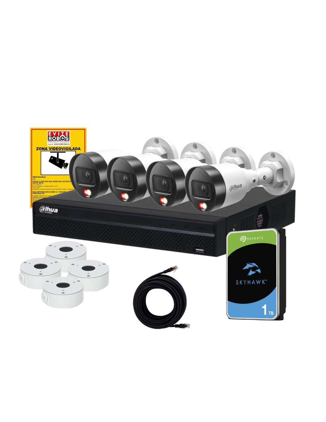 - 4 cámaras Dahua IP 4MP con visión nocturna en color (Dual Light), micrófono y detección inteligente de personas