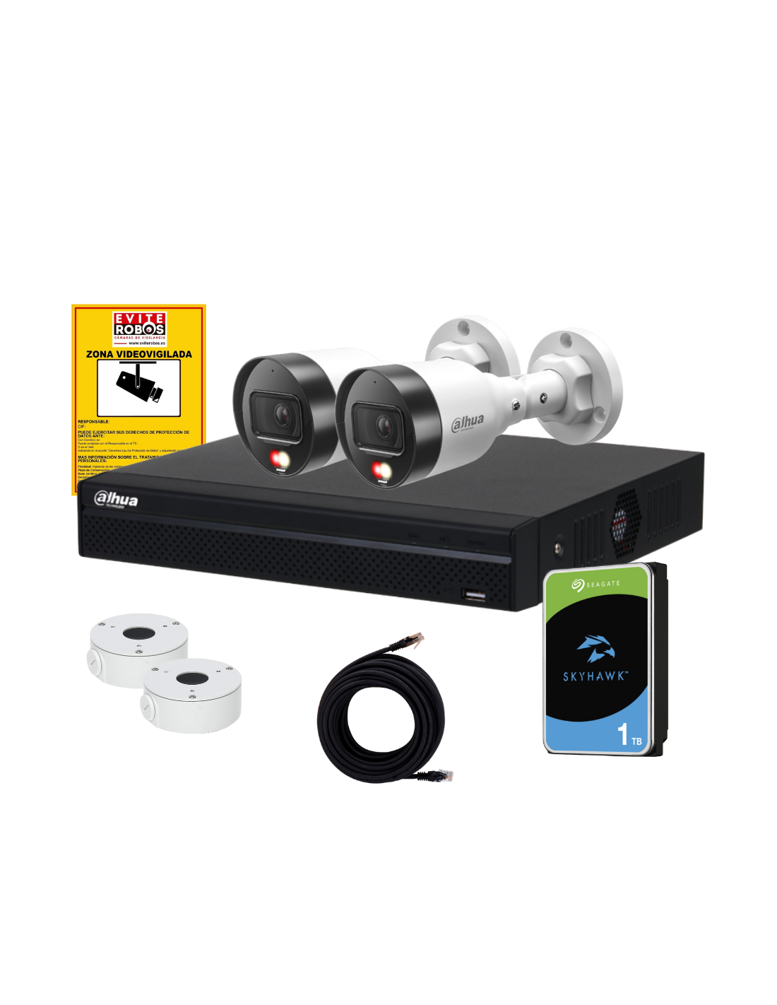 - 2 cámaras Dahua IP 4MP con visión nocturna en color (Dual Light), micrófono y detección inteligente de personas