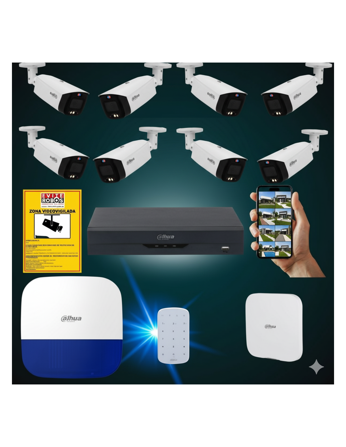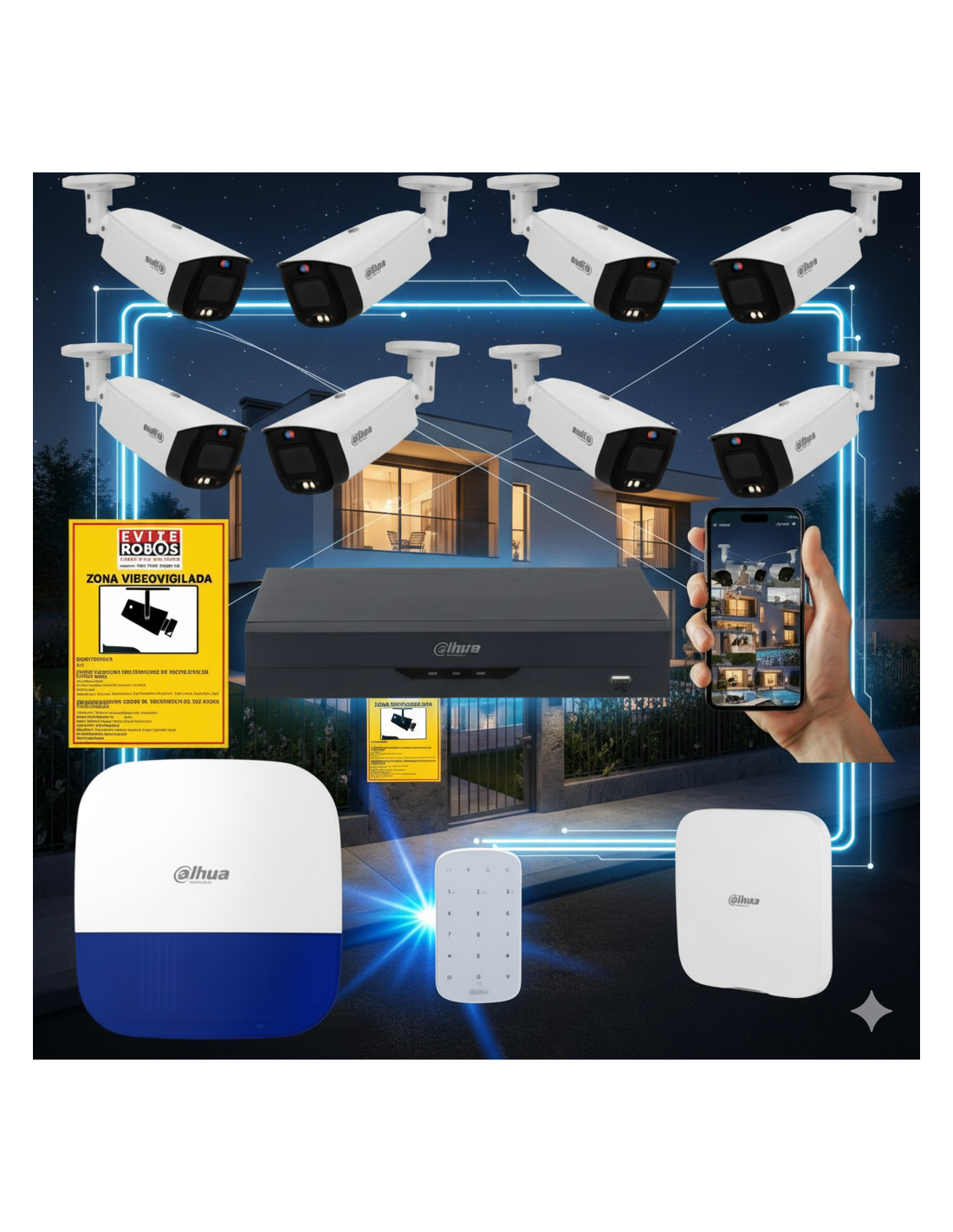 - 8 cámaras bullet Dahua TiOC 4MP con disuasión activa (luz y audio).