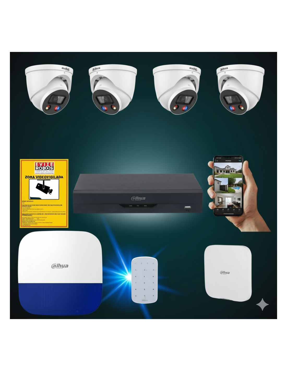 - 4 cámaras domo Dahua TiOC 4MP con luz disuasoria y audio bidireccional.