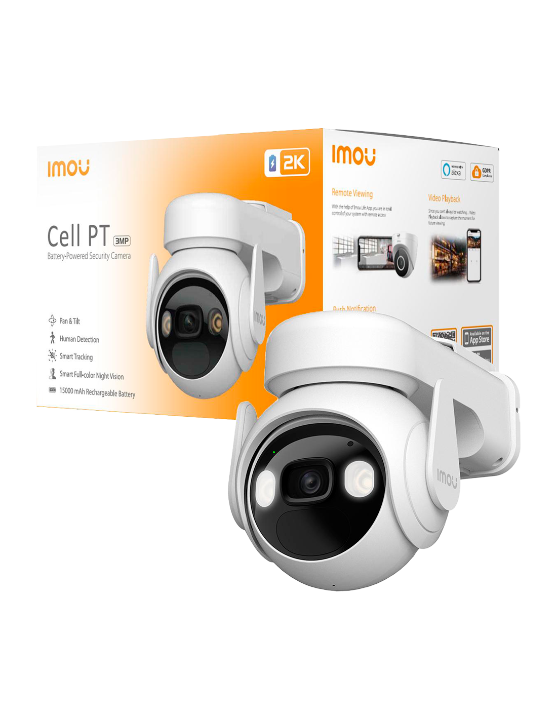 La cámara IMOU Cell PT 4G 3 MP (IPC‑K9EP‑3T0TE‑EU) ofrece una solución avanzada de seguridad para exteriores que combina la movilidad de una cámara sin cables con la potencia de la conectividad 4G, convirtiéndola en un dispositivo ideal tanto para viviendas como para pequeñas empresas. Gracias a su batería interna de 15.000 mAh, puede instalarse fácilmente en zonas remotas, muros exteriores, pérgolas, trasteros o dentro de obra sin necesidad de alimentación fija de red o cableado Ethernet.