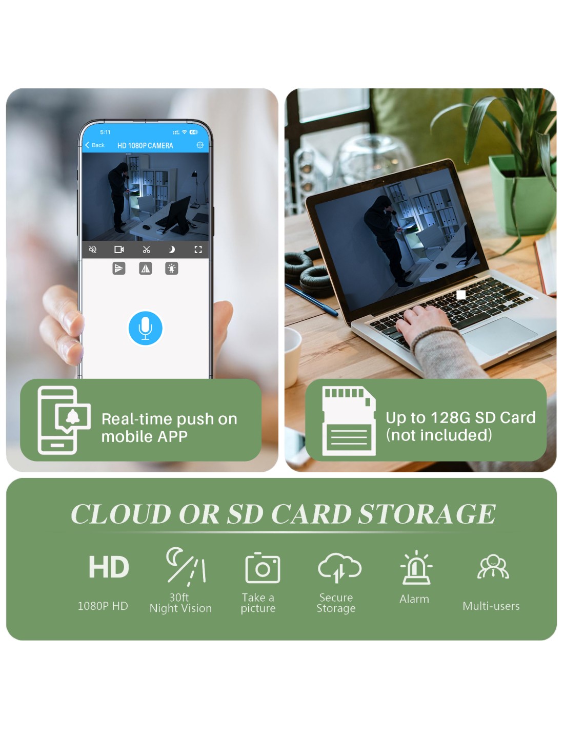 Modos de grabación personalizables: Continua o por detección de movimiento, optimizando el uso de la tarjeta Micro SD (hasta 128GB).