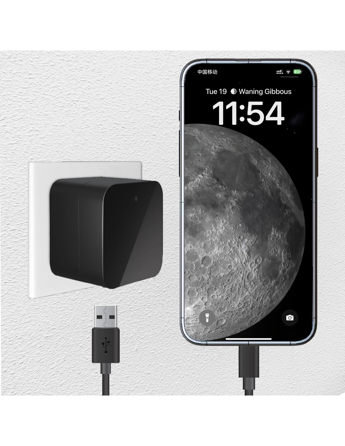 Mantén todo bajo control sin que nadie lo note. Esta cámara oculta en un cargador USB funcional graba en Full HD, se conecta por WiFi y cuenta con visión nocturna invisible para una vigilancia discreta y efectiva.