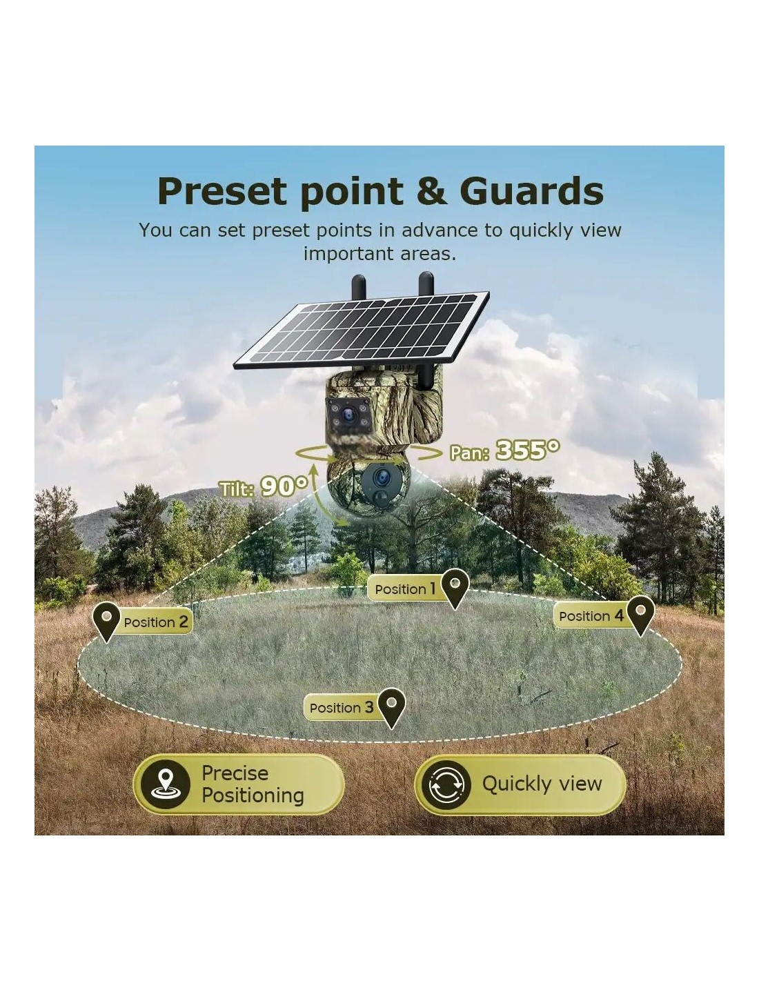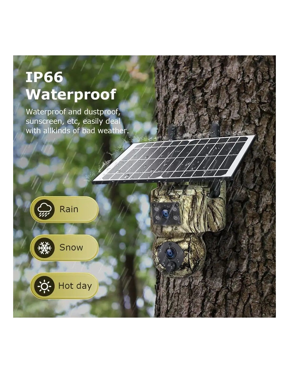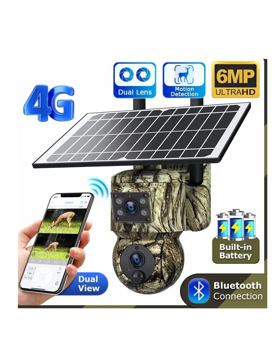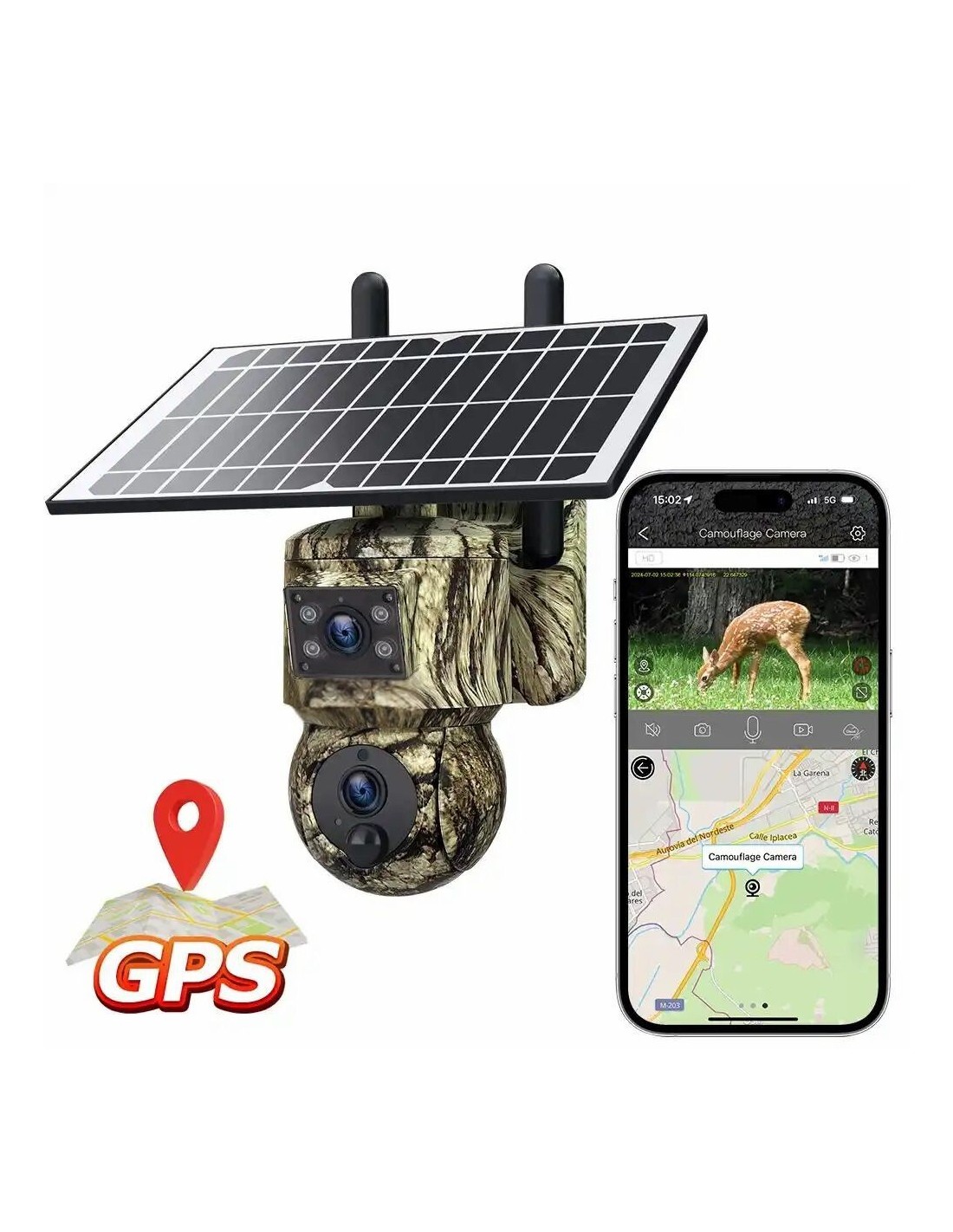 Cámara de Seguridad Solar 4G PTZ Camuflaje con GPS, Doble Lente 6MP, Visión Nocturna y Detección de Movimiento