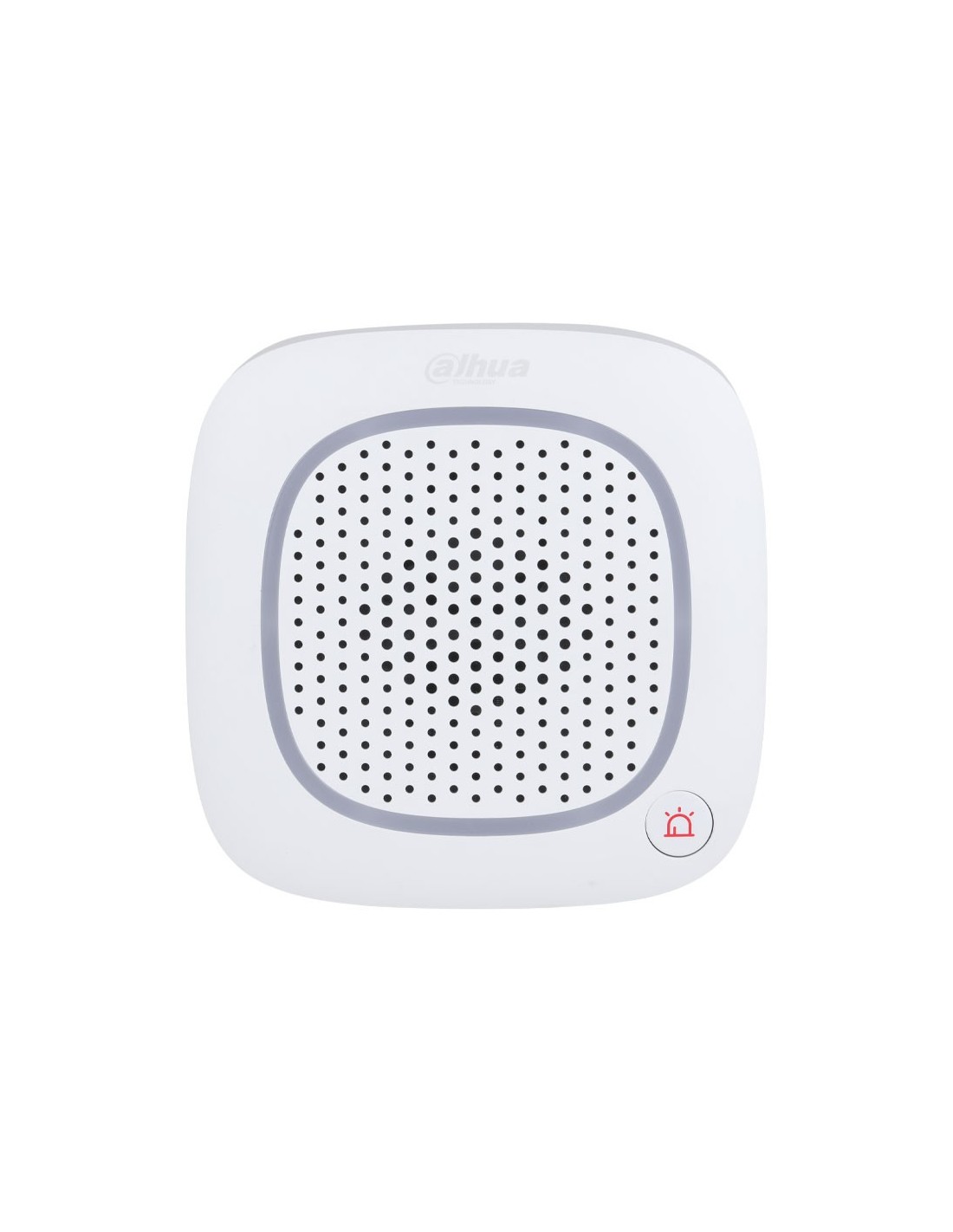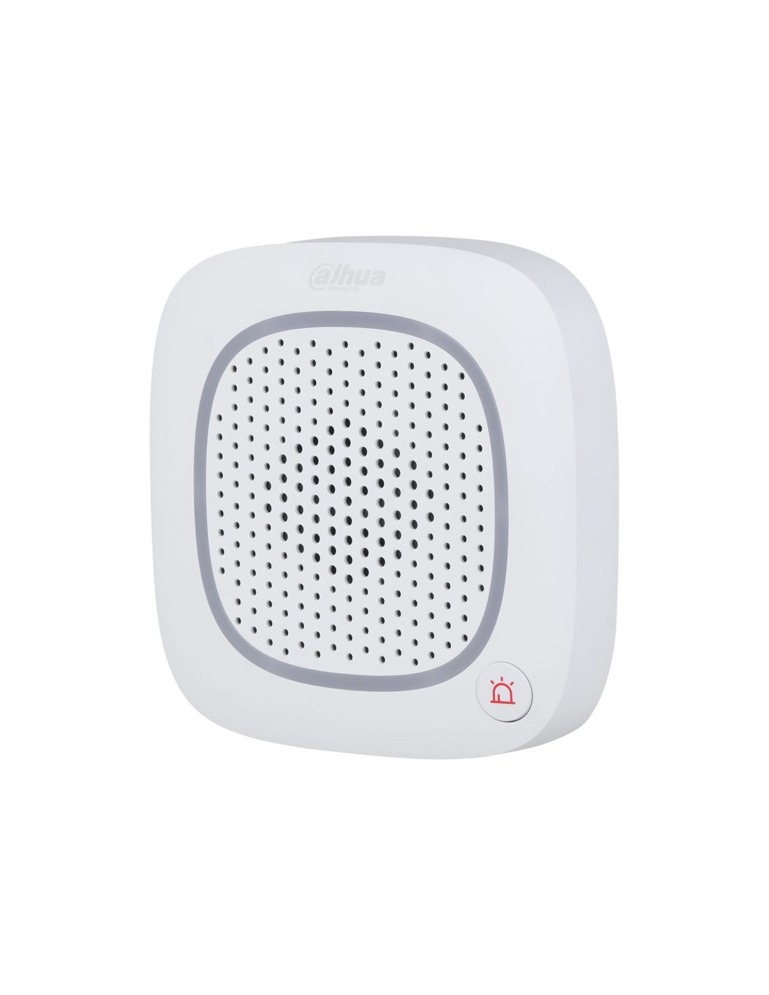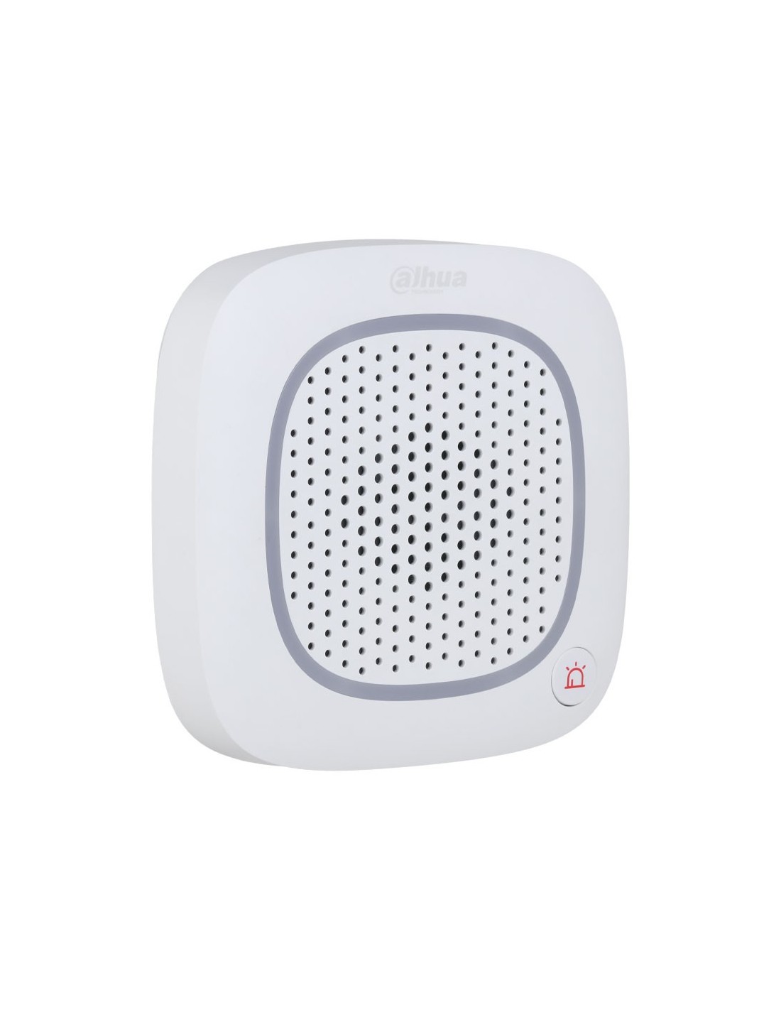 La sirena inalámbrica Dahua ofrece sonido de alarma de 105 dB con múltiples modos (incendio, médica, intrusión), intercomunicador bidireccional y botón de pánico. Incluye comunicación encriptada y LED de armado/desarmado.