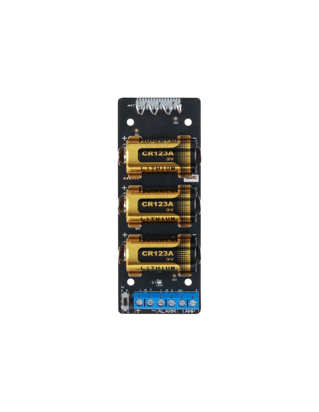 - Alimentación: Alimentado por 3 pilas CR123A, con una vida útil de hasta 5 años; consumo de 45 µA en funcionamiento y 50 mA en alarma.