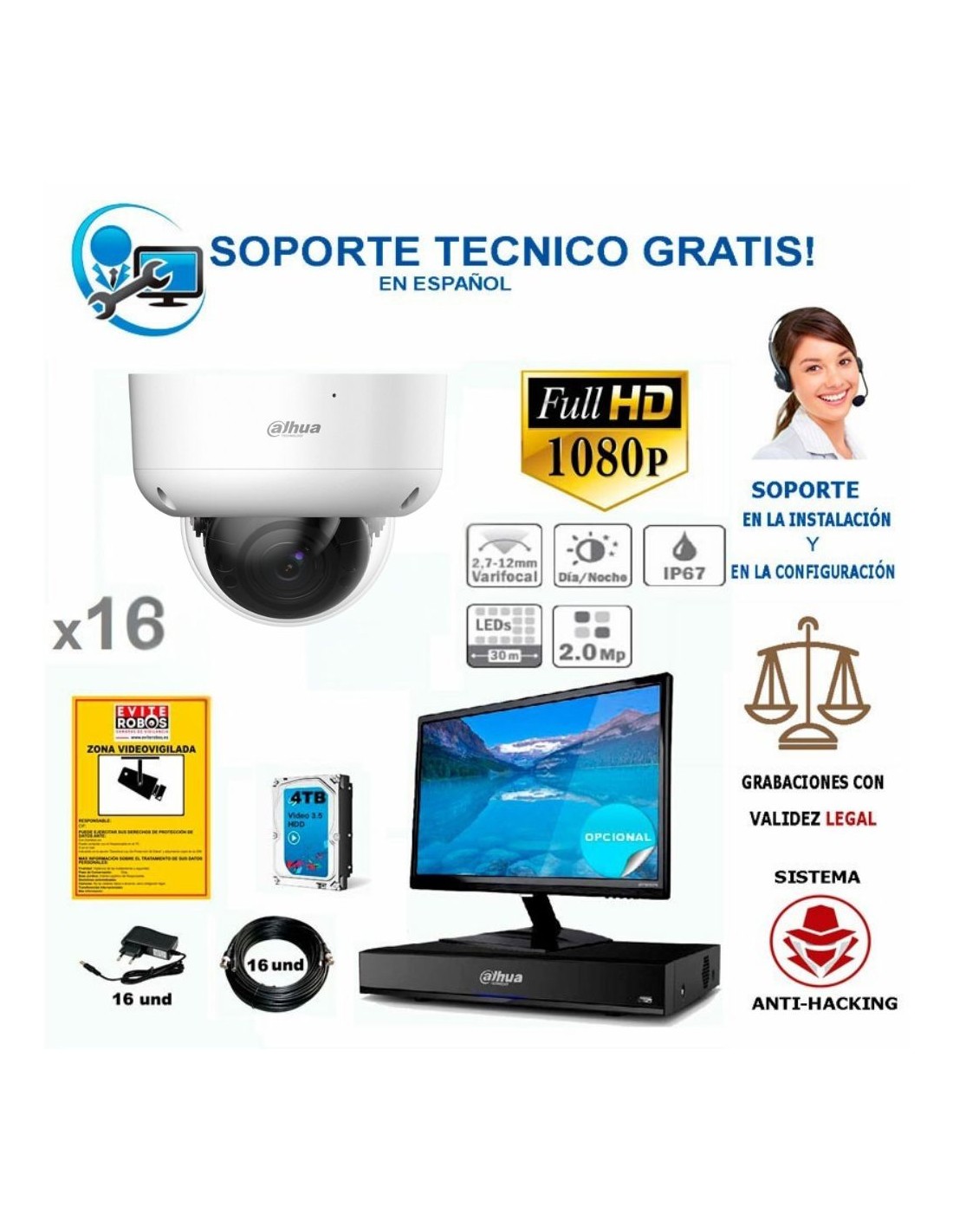 - Kit con 16 cámaras – Vigilancia completa en negocios grandes, comunidades o edificios.